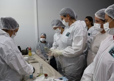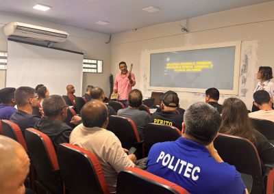 Com 20 horas de duração, este curso destina-se a peritos oficiais e agentes técnico forense, visando capacitá-los para garantir a integridade da cadeia de custódia de vestígios. A formação inclui teoria e prática sobre coleta, acondicionamento, armazenamento e transporte de vestígios biológicos e balísticos, além de procedimentos operacionais padrão (POP). O curso é realizado em um ambiente com estrutura para aulas teóricas e práticas.